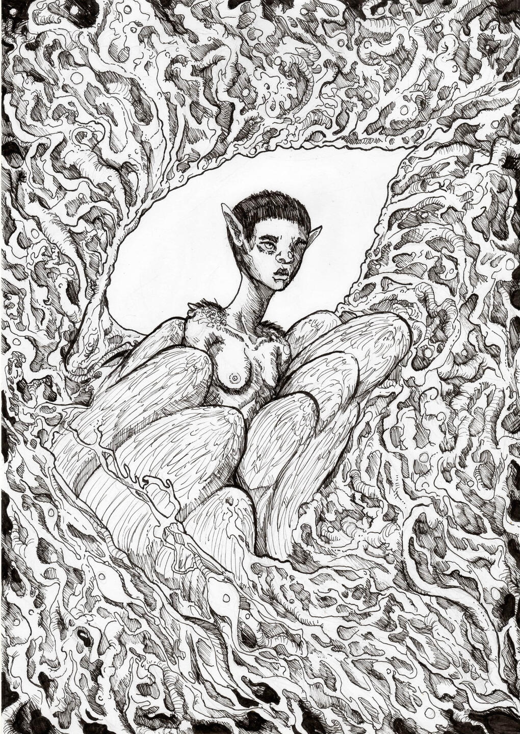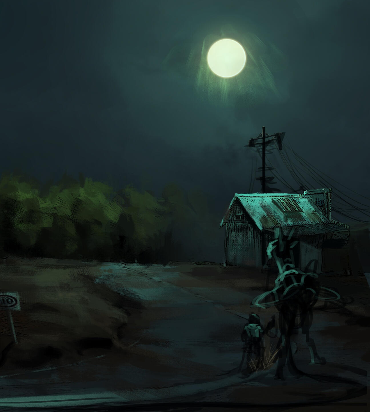 Most of my brushes are from the Clip Studio Assets site. I tend to use traditionally textured brushes or scan in my sketches to draw over. Other assets, like gradient maps, patterns, or stamps, are from the asset store.
