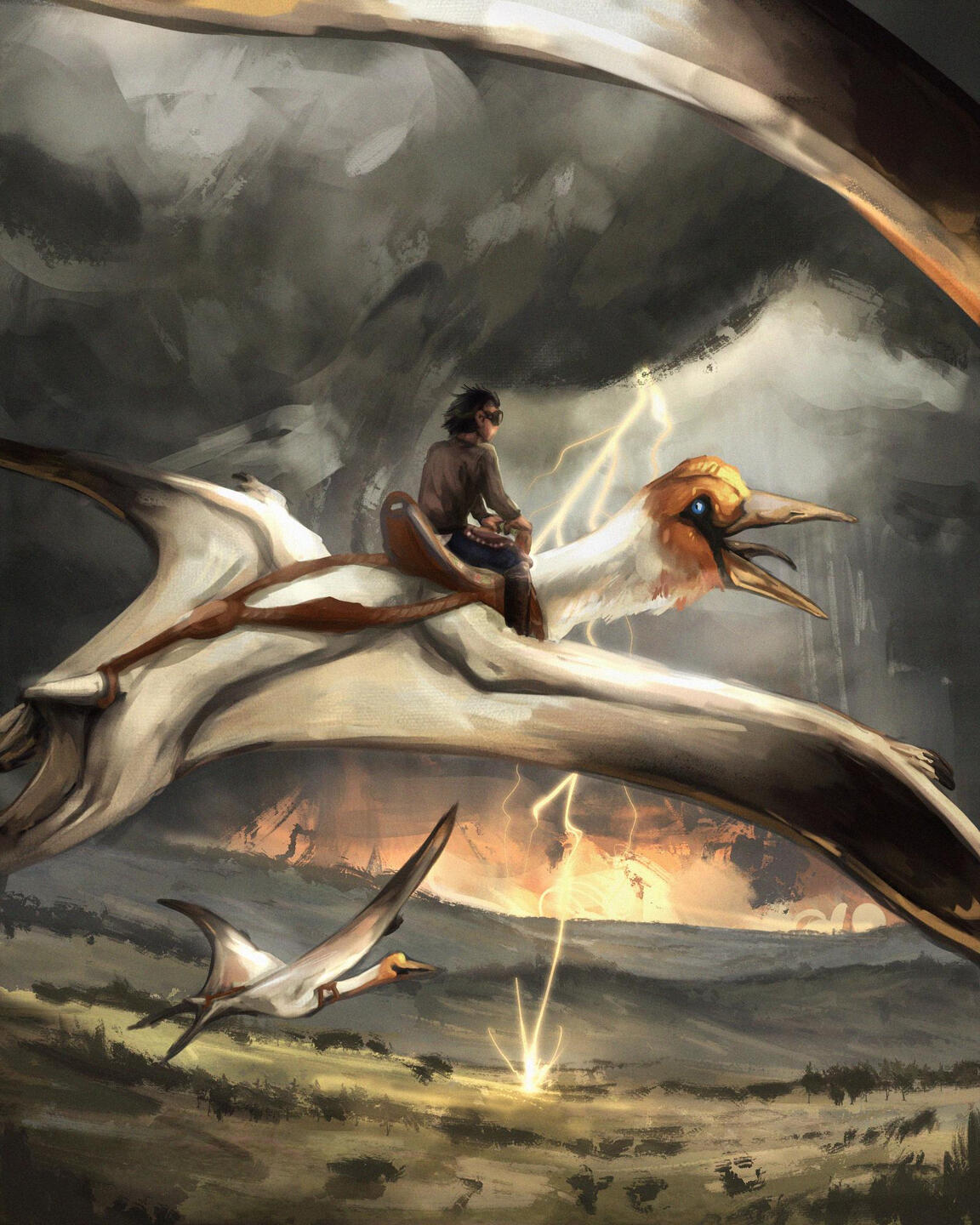 Just random projects, like drawing all the birds I see as mythical guardians or dinosaurs in modern day. |